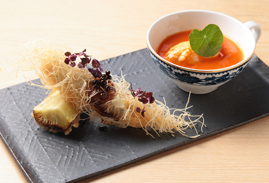 분고 수로에서 나온 제철 식재료가 지닌 본연의 매력을 최대한 이끌어내는 것이 저희 요리의 특징입니다.